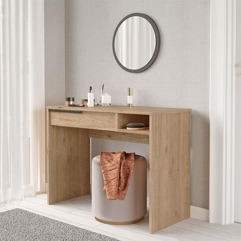 Τουαλέτα κρεβατοκάμαρας-καθρέπτης Dorjie μελαμίνης φυσικό-ανθρακί 100x44.5x75εκ