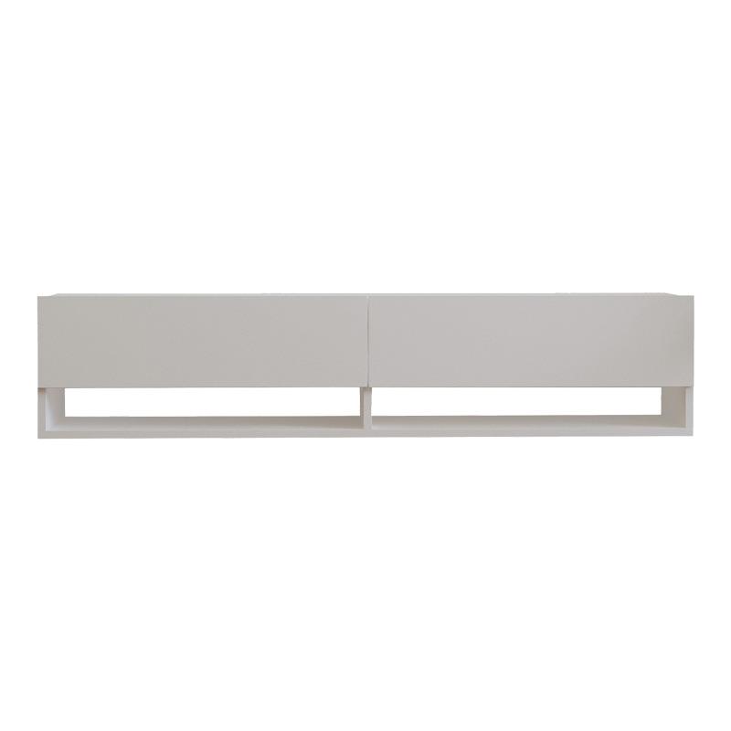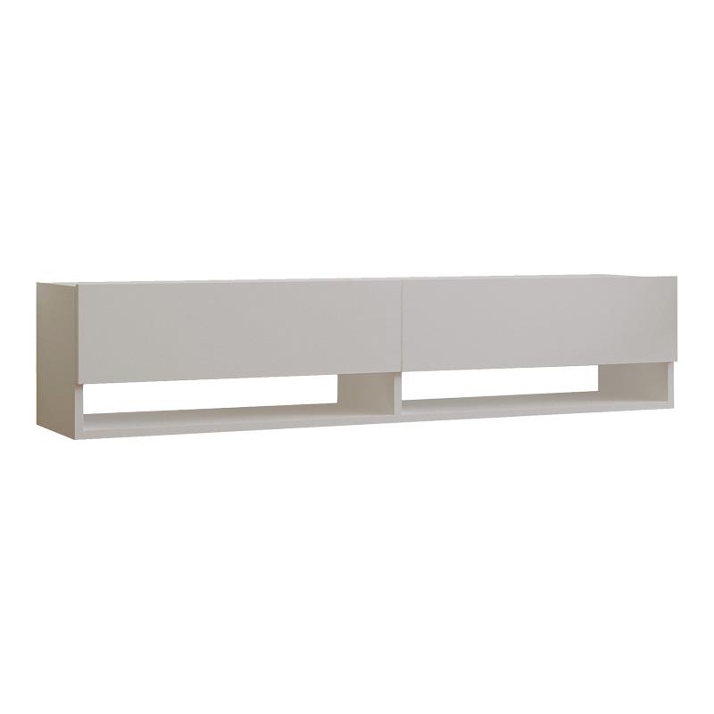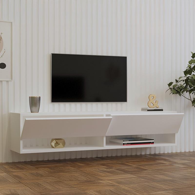 Upgrade the aesthetics of your space with the Melosa wall-mounted and hanging TV cabinet, in a bright white shade, which is an ideal combination of aesthetics and practicality. It has 2 opening cabinets as well as 2 open storage spaces for all your items.