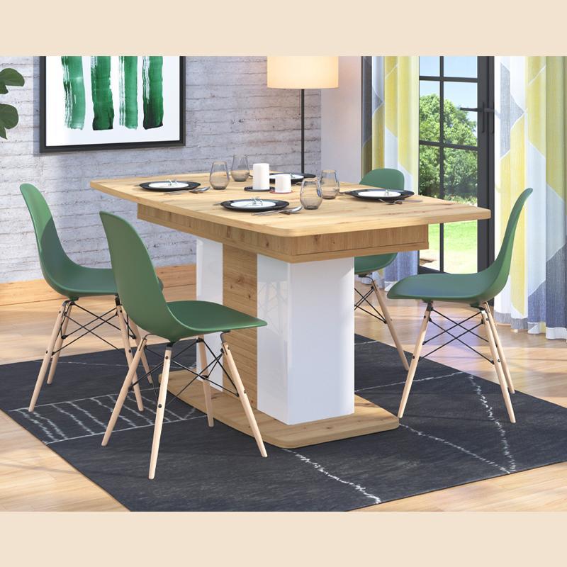 Expandable Dining Table Bretagna Artisan Oak – White High Gloss Foil 160.5×90.5×76.5 cm