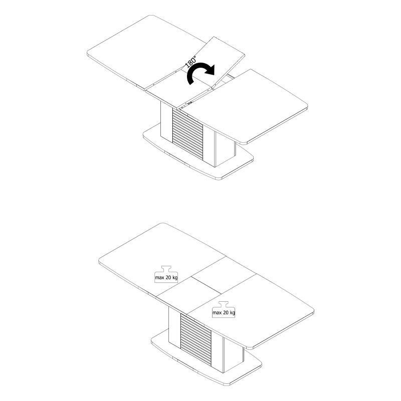 The Bretagna dining table is the ideal choice to transform your space into a center of hospitality and warmth. The combination of artisan oak with a white glossy surface allows the table to fit perfectly into any modern and elegant space. With the possibility of extension, the table is ready to host large gatherings and family dinners, while its functional design guarantees comfort and elegance. The careful construction of chipboard with certified E1 melamine coating and MDF allows for durability and long-term use.