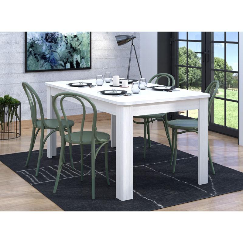 The Jersey table has a top made of MDF with an E1 melamine coating, ensuring both durability and easy maintenance. The white, glossy surface, combined with the elegant legs, highlights the simplicity and elegance that suit any modern home. The ability to extend the table from 160 cm. to 200 cm. makes it extremely practical, as it can accommodate larger groups and adapt to your needs.