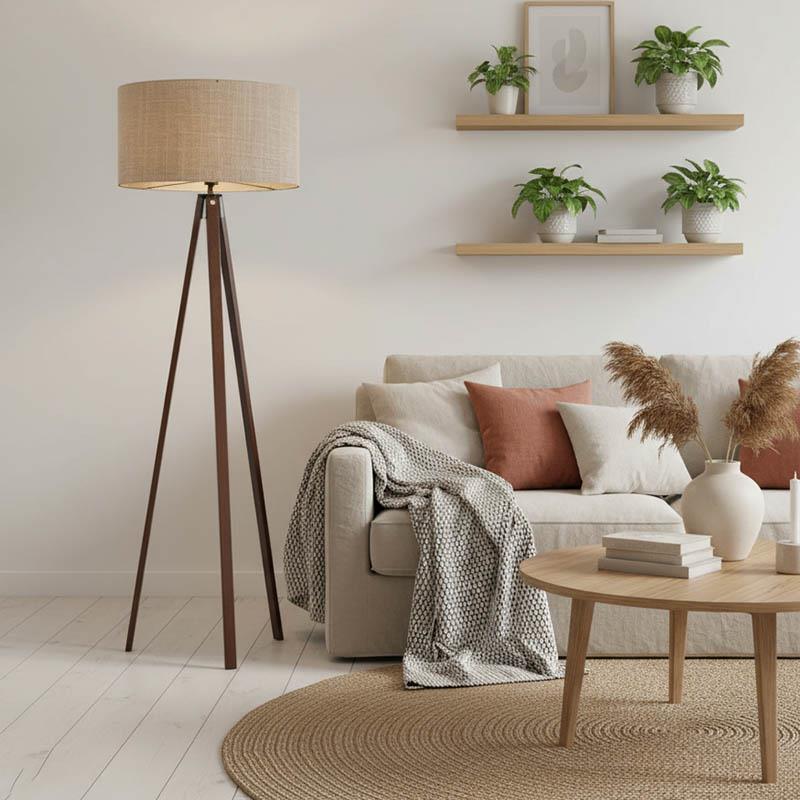 Floor lamp PWL-1059 Ε27 beige-walnut D38x140cm