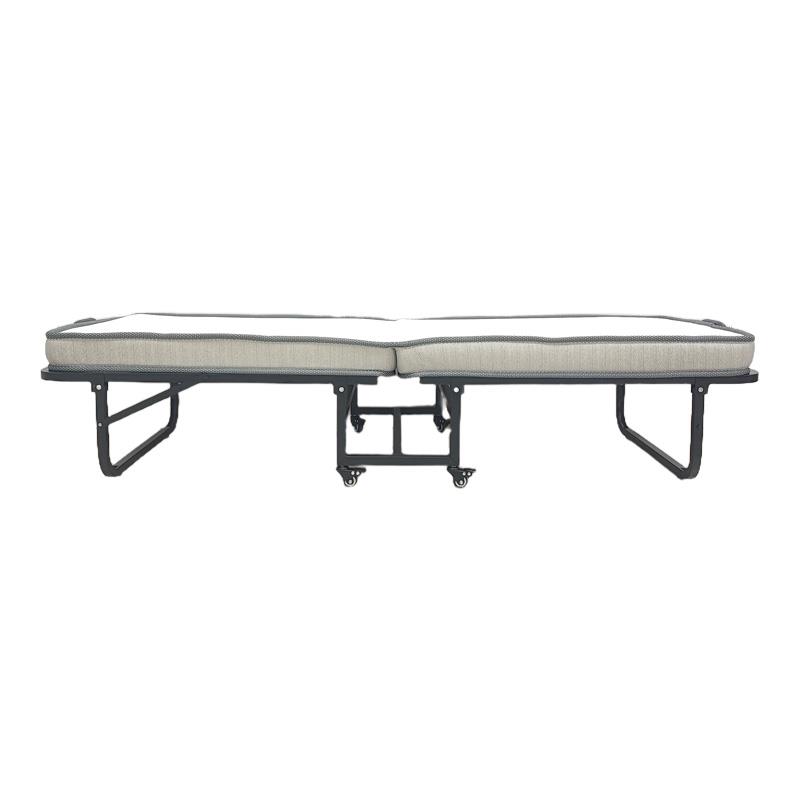 The bed comes with a comfortable mattress that folds seamlessly with the frame, minimizing the required storage space. The integrated wheels under the base provide unmatched ease of movement, making it ideal for quick room rearrangements or for storage in closets and storage rooms.