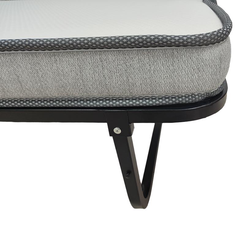 A practical and versatile folding bed, ideal for guests, small spaces, or emergency sleeping needs. The sturdy metal frame in a dark finish ensures durability and stability, while the smart folding mechanism allows for quick and easy storage when not in use.