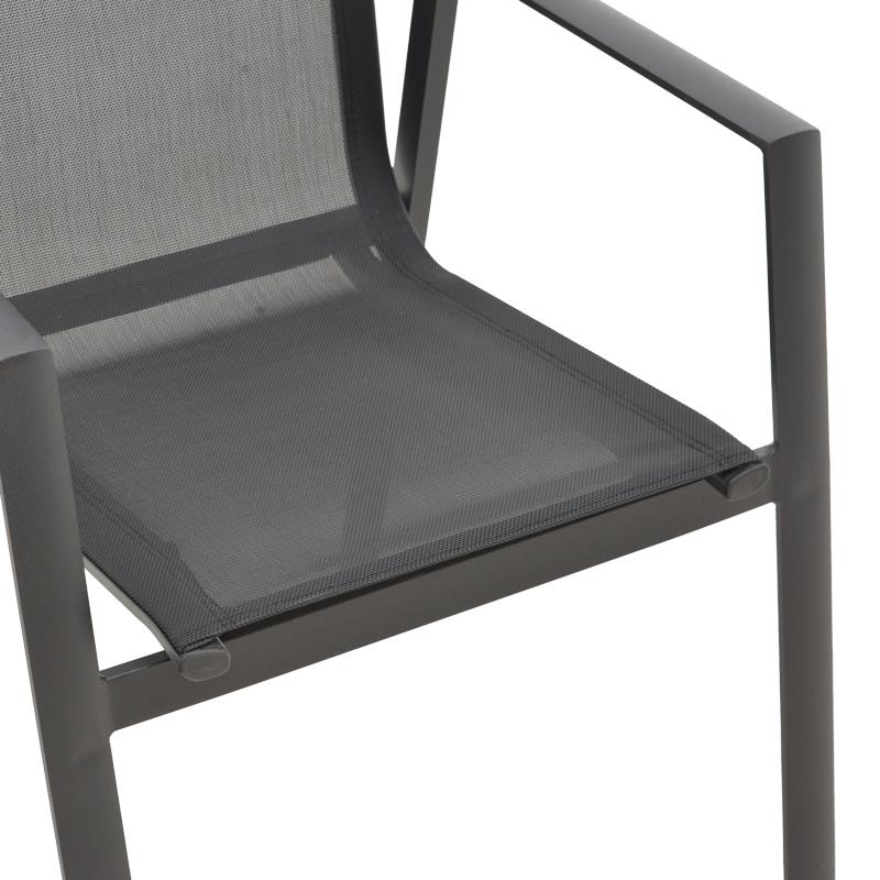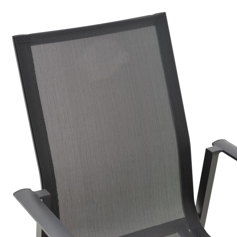 - Stable frame made of excellent quality aluminum with resistance to stress and wear. Mainly chair body made of excellent quality textilene. Textilene is a fabric with high resistance to solar radiation and humidity while at the same time allowing the skin to "breathe", thus creating comfort in the seat.