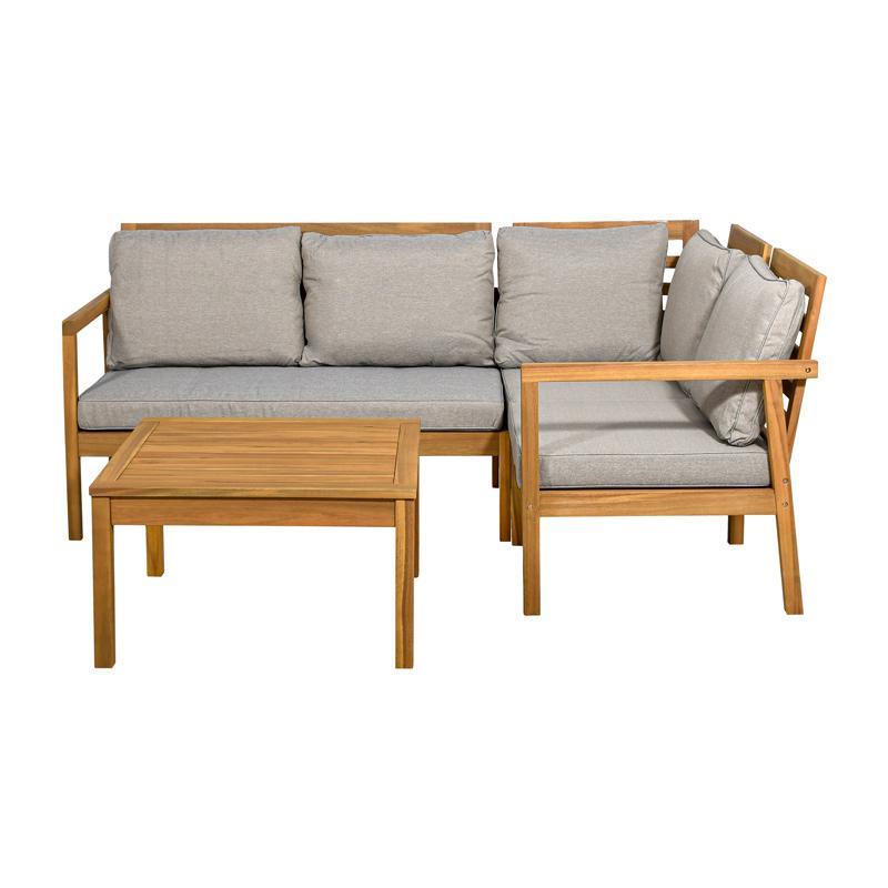 Σετ κήπου γωνιακό 4 τεμ. FL130 Fylliana Ξύλο ακακίας Καρυδί σκελετός Μπέζ - Καφέ Ύφασμα 190x130x79 εκ.