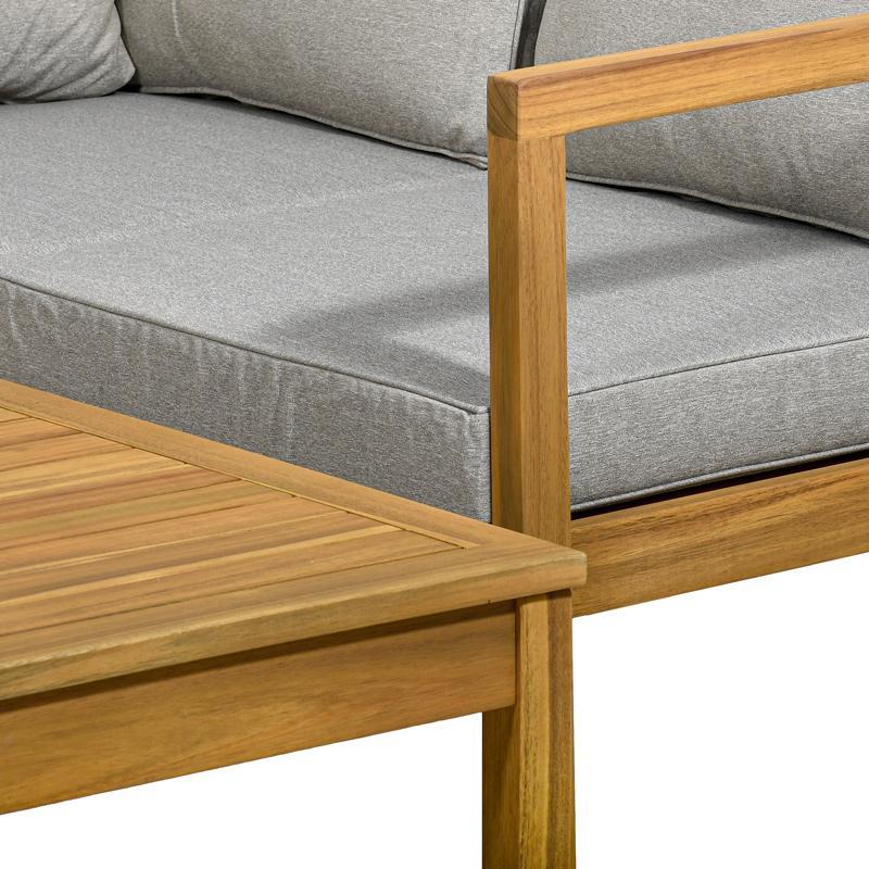 Garden set Corner 4 pcs FL130 Fylliana Acacia Wood Walnut frame Beige – Brown Fabric 190x130x79 cm