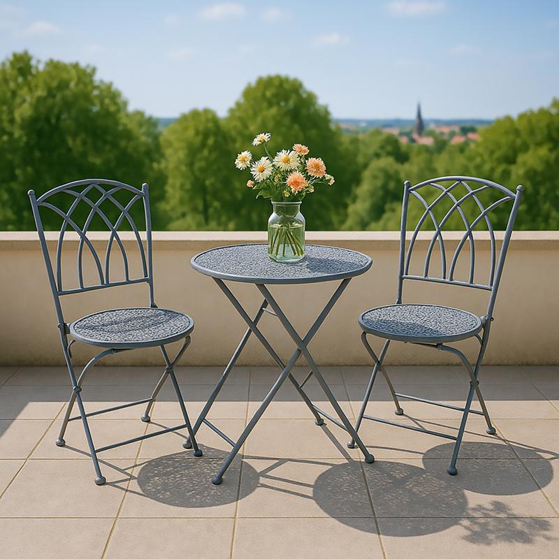 Outdoor Dining Set C5184.01 3pcs Grey Metal with Table 70x70x72 cm & 2 Chairs Leon