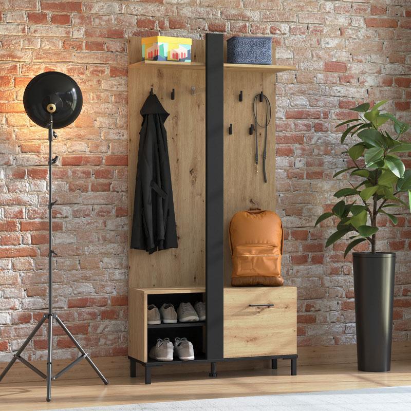 Hallway Unit Capitello Artisan – Black – Black Matt 90x33x191 cm