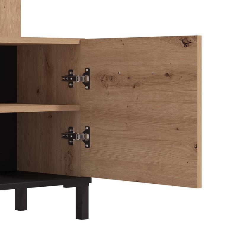 The combination of artisan oak with black color and matte melamine creates a timeless and dynamic contrast, which gives your space a sophisticated and modern character. The elegant matte finish on MDF adds additional depth and style to the furniture, while the black plastic handle with aluminum edges completes the look with a futuristic yet timeless design.