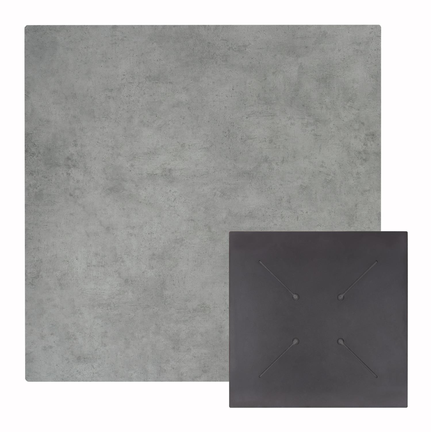 Square beveled tabletop in CEMENT color, which is suitable for contact with food. In general, the material is environmentally friendly. It can be used in various places such as cafes, restaurants, and tourist accommodation, either indoors or outdoors.