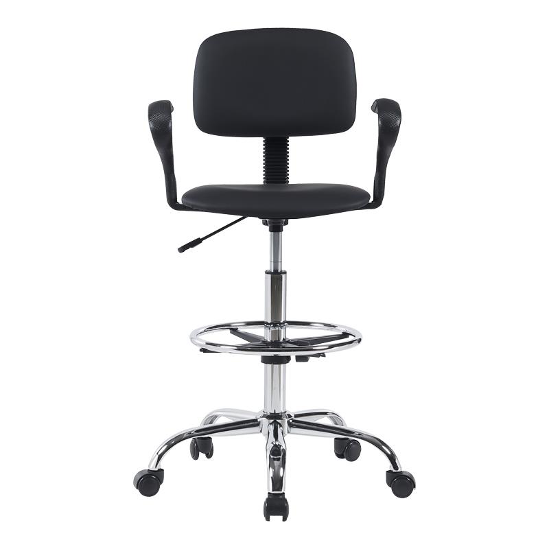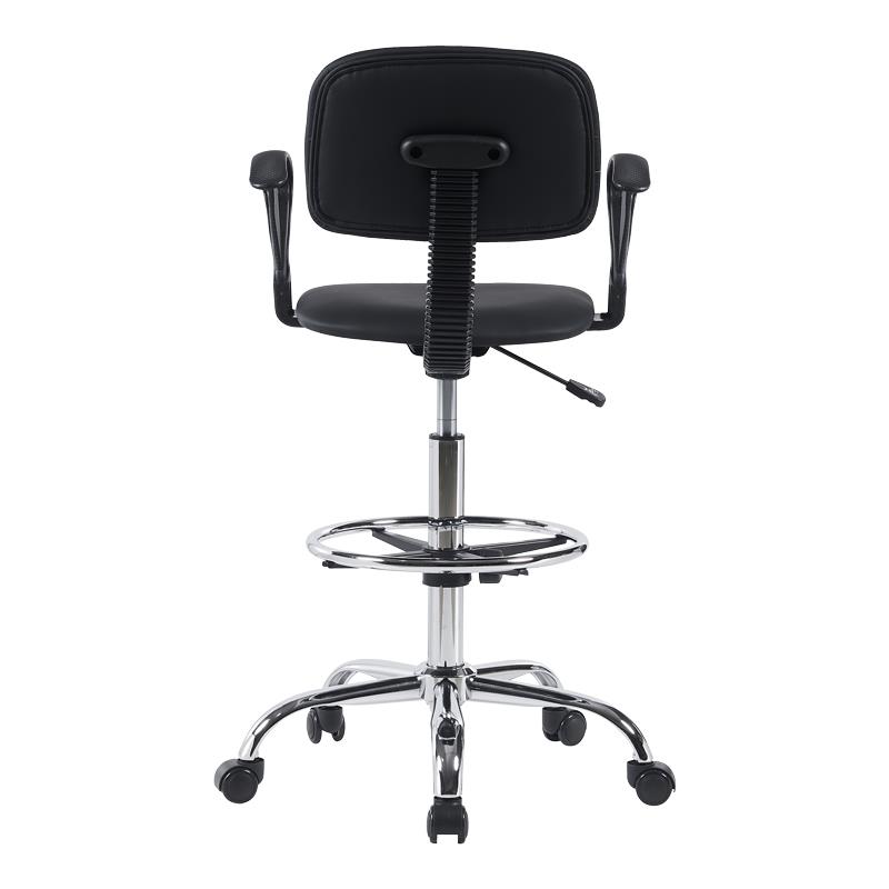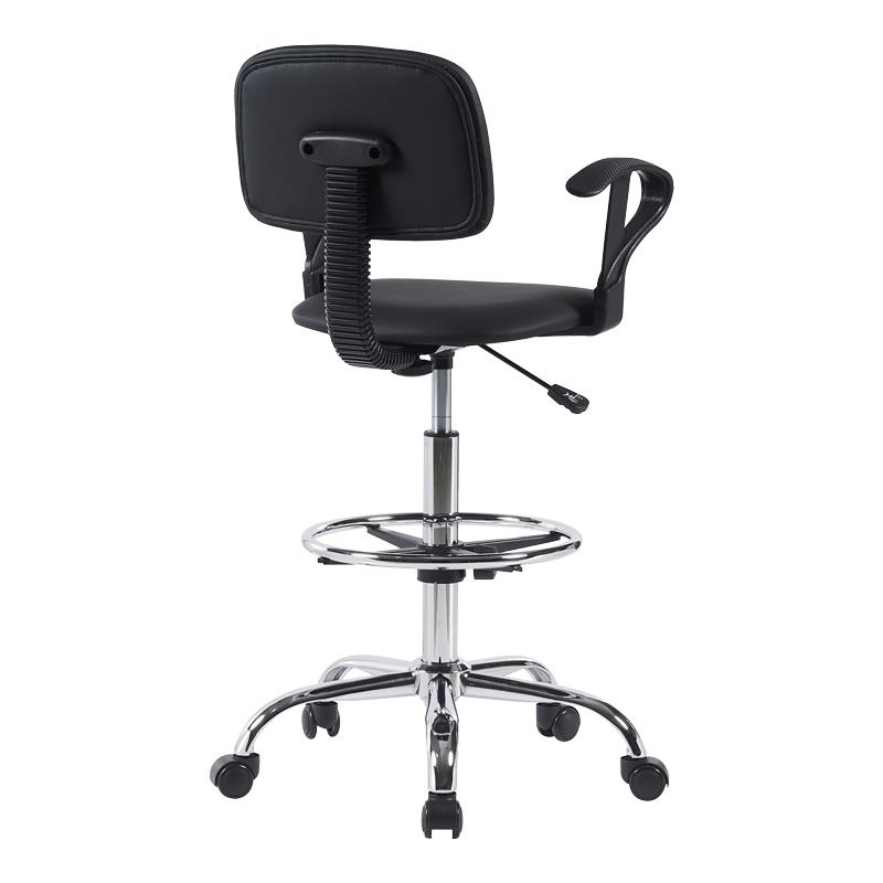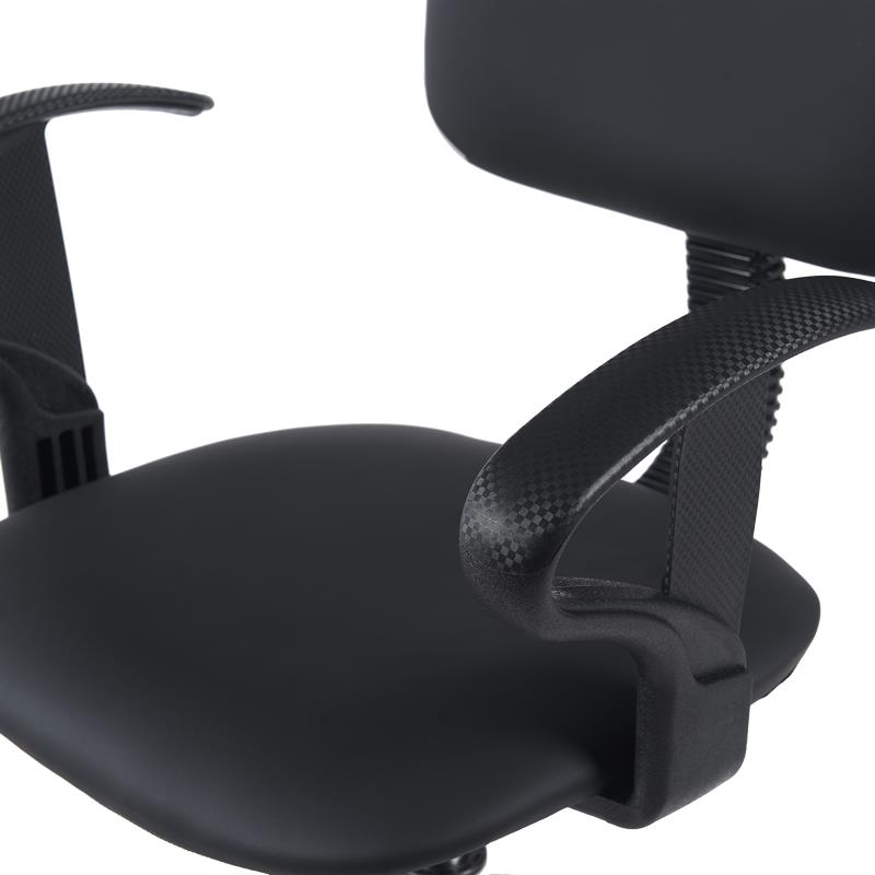 • Backrest and seat upholstered with high-quality PU leather that ensures durability and easy cleaning. Available in black.