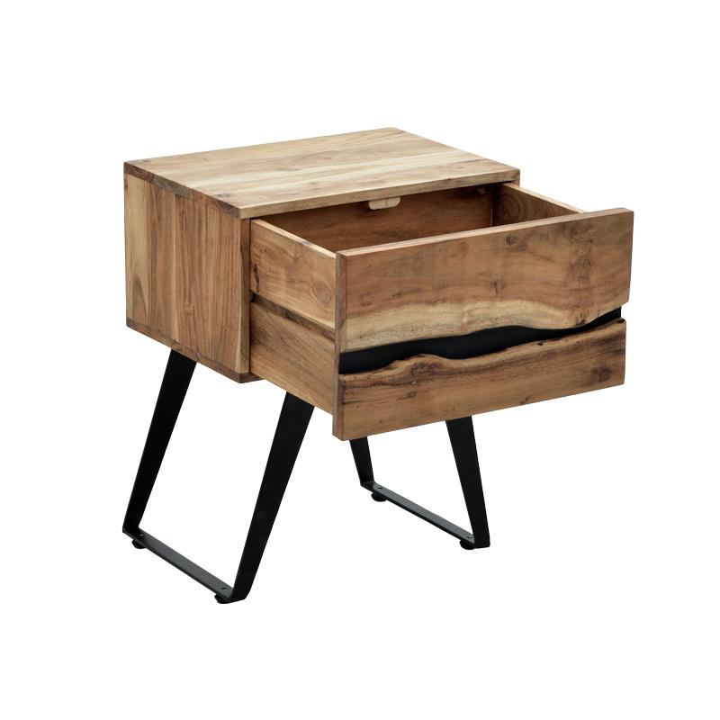 Κομοδίνο Imena μασίφ ξύλο Acacia σε φυσικό με μαύρα μεταλλικά πόδια 45x35x56εκ