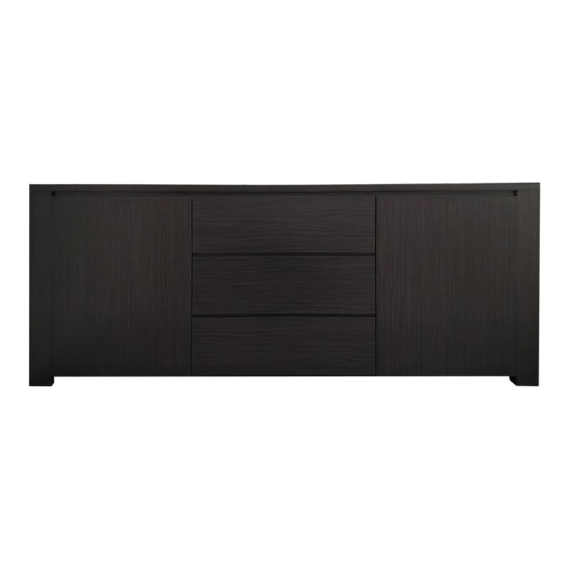 It features two side cabinets with interior shelves, ideal for storing items you wish to keep discreetly tucked away. In the center, three spacious drawers provide additional storage for smaller items, helping you maintain a neat and organized environment. The top surface offers ample space for displaying decorative elements, lighting fixtures, or other accessories. Crafted from high-quality wood in a natural tone, it adds a warm and inviting feel to your space, while its sturdy construction ensures long-lasting durability. This versatile piece is ideal for the living room, dining room, or any area in need of stylish extra storage.