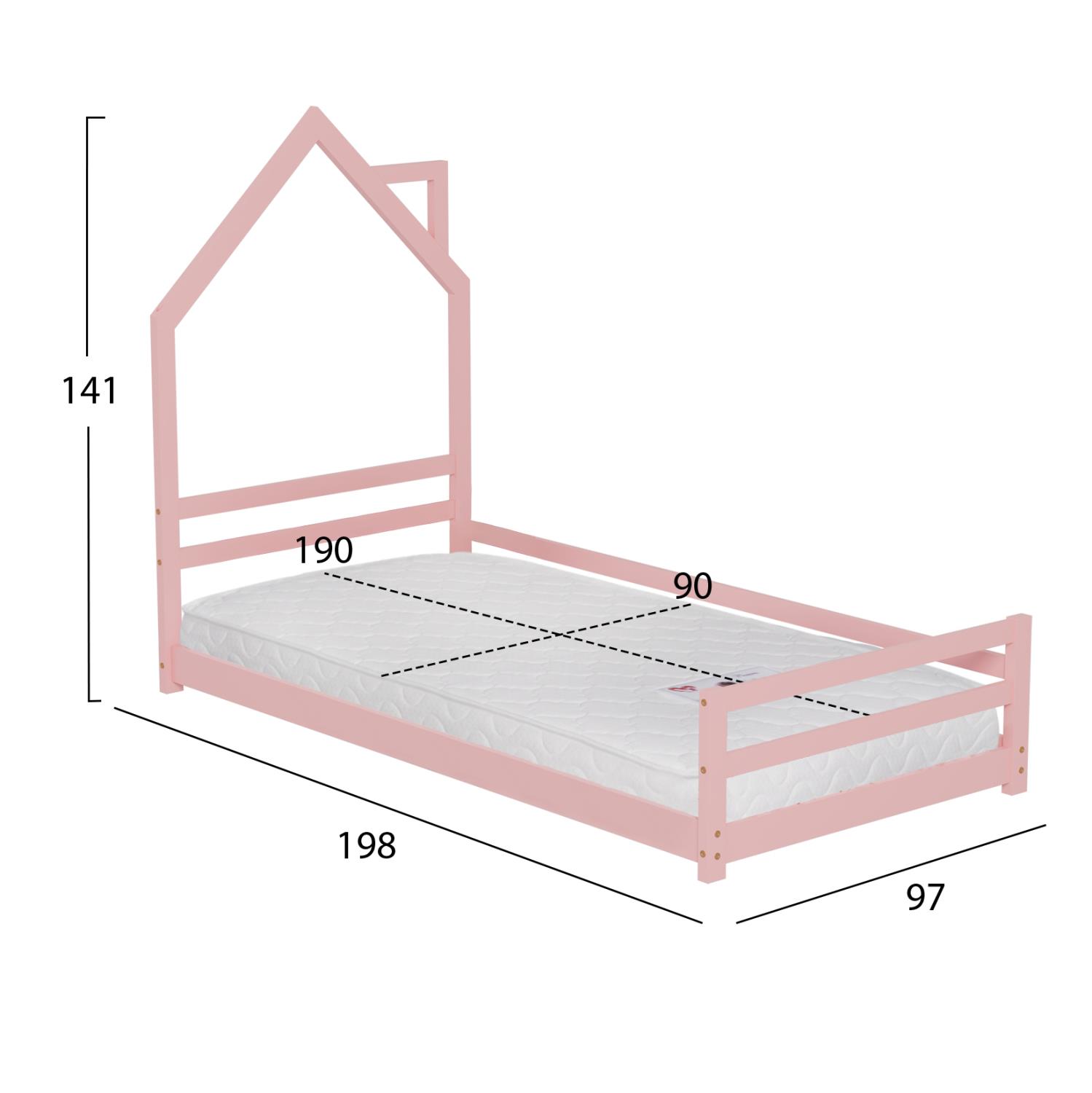 Παιδικό Κρεβάτι με Στρώμα HOUSER Ξύλο Πεύκου σε Ρόζ Απόχρωση 90x190εκ