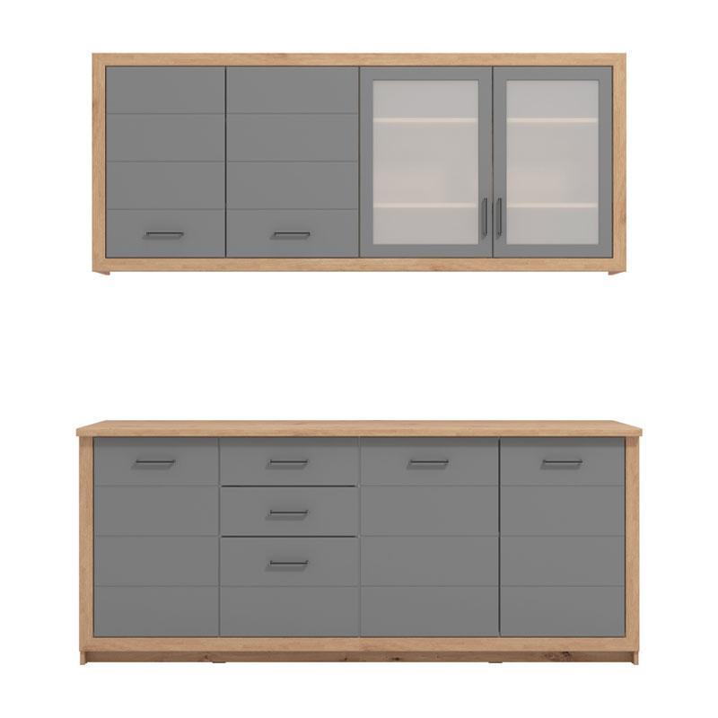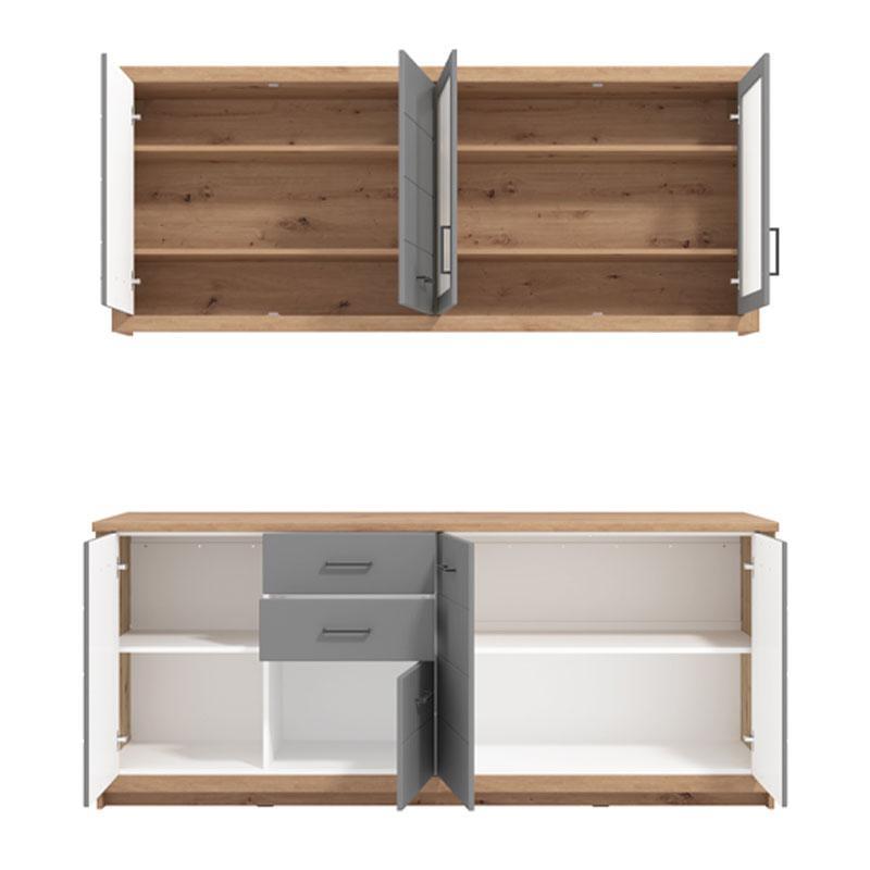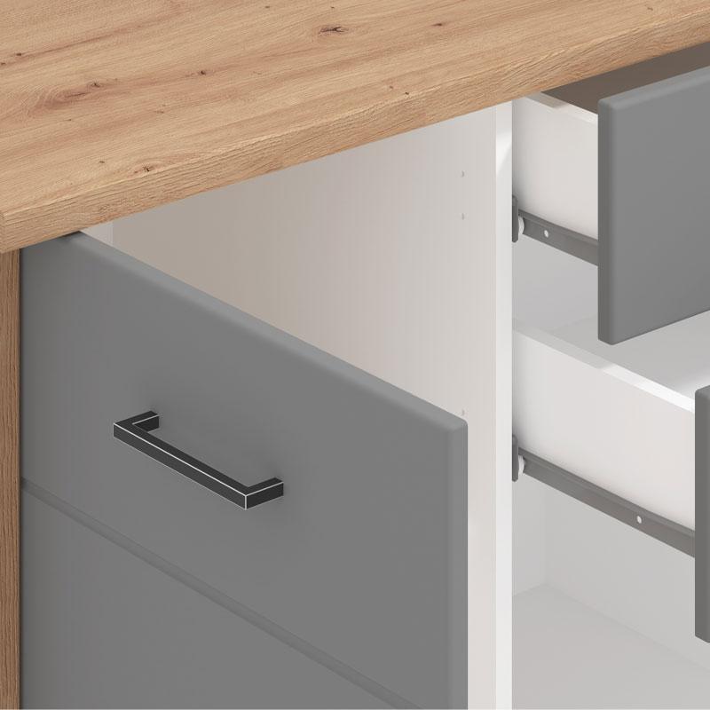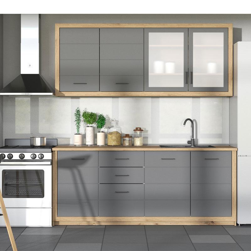 The Ipanema 200 ready-made kitchen set is a sophisticated and elegant choice with a combination of shades of artisan oak and matte gray, making it an excellent choice for any modern home or rental room. Designed to meet your every aesthetic and practical need, this kitchen set offers plenty of storage space, with 2 wall cabinets as well as two floor cabinets, one of which has 2 drawers with soft close mechanisms as well as three storage spaces while the other has 2 large spaces for all utensils and various cooking items.