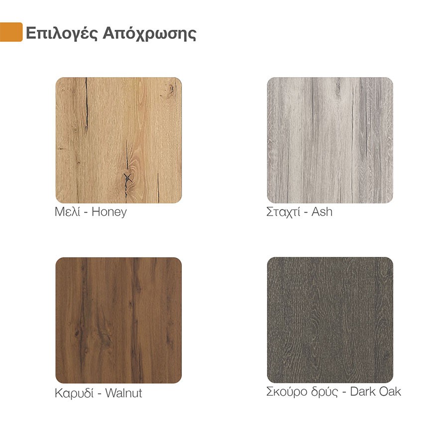 Available options - 4 wood shade options: Honey, Ash, Walnut & Dark Oak combined with Grey Marble