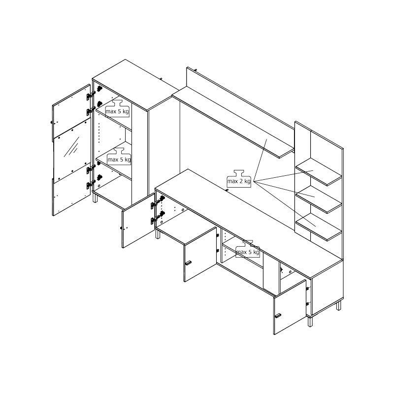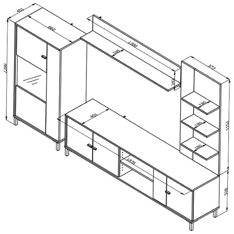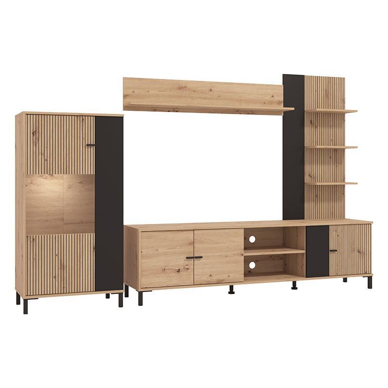 If you are looking for an elegant and functional way to showcase your living room and organize your audiovisual equipment, the AVIGNON living room set is an ideal proposition. Its combination of black finish and neutral but sweet artisan oak shade offers a modern yet warm aesthetic, matching any interior decoration style.