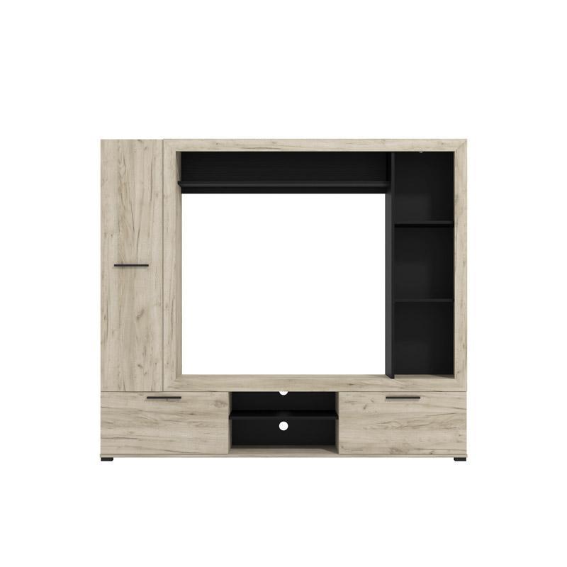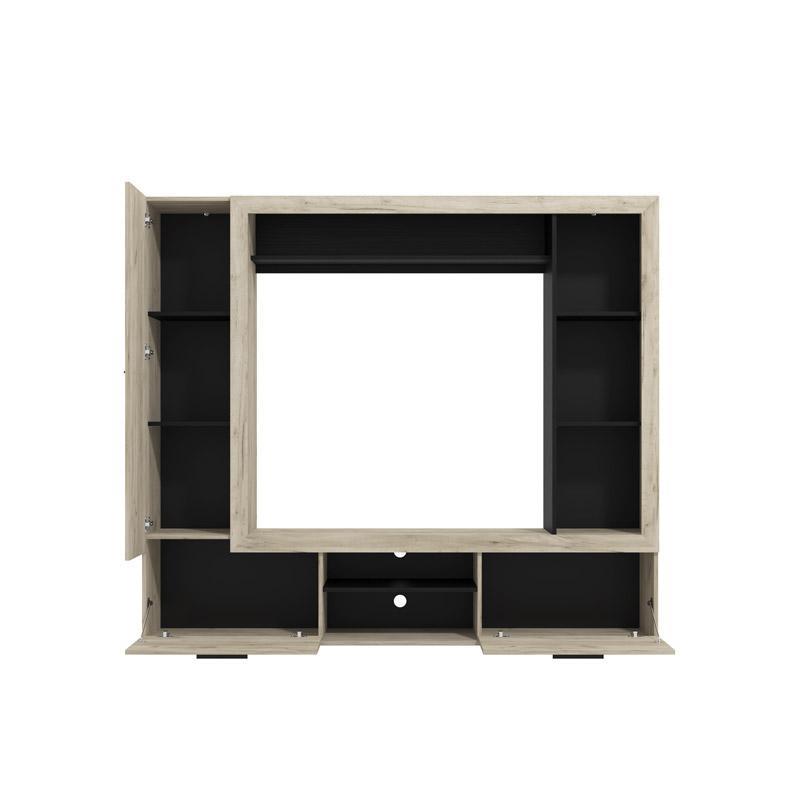 If you are looking for an elegant and functional way to showcase your living room and organize your audiovisual equipment, the LORCA living room set is an ideal solution. The combination of black finish and neutral grey oak shade offers a modern yet warm aesthetic, matching any interior design style.