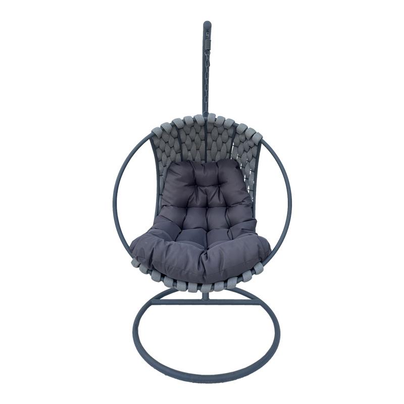 - Includes a cushion that fits perfectly with the swing's size. Made from fabric and offered in gray.
