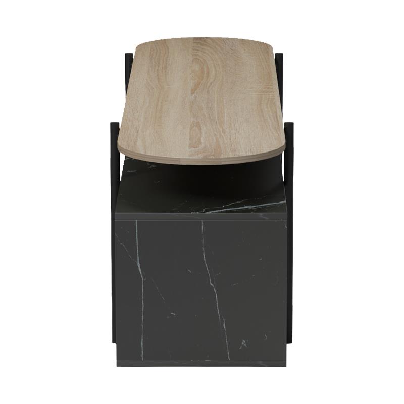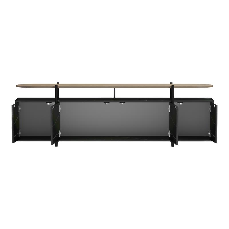 Open top shelf in Sonoma finish adds a warm touch and can be used to place a TV, decorative objects, or a soundbar