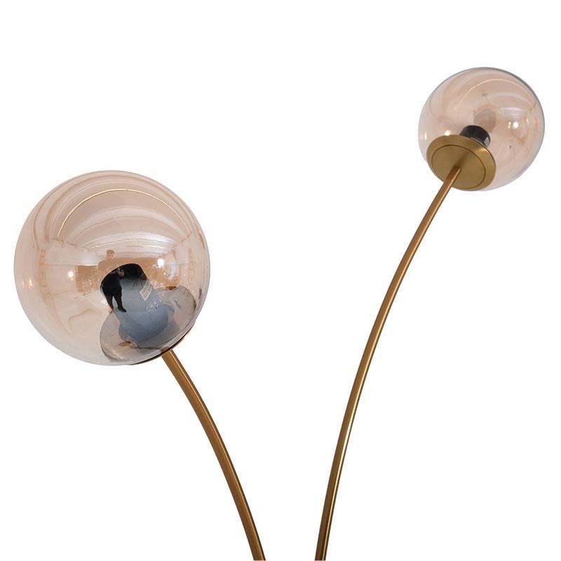 With a timeless aesthetic and a timeless character, the metal floor lamp with two lamps is a proposal for a living room or bedroom. The amber-colored glass shades gently diffuse the light, creating an atmospheric and warm atmosphere, while the gold-black base provides stability and an elegant finish. The double lighting offers greater functionality, covering both daily needs and moments of relaxation. Its durable metal construction ensures long-term use, while its careful design easily fits into different decoration styles.