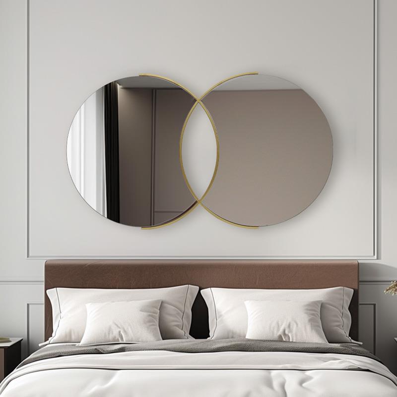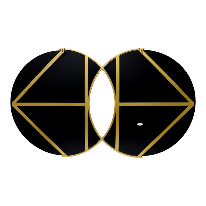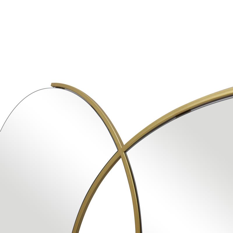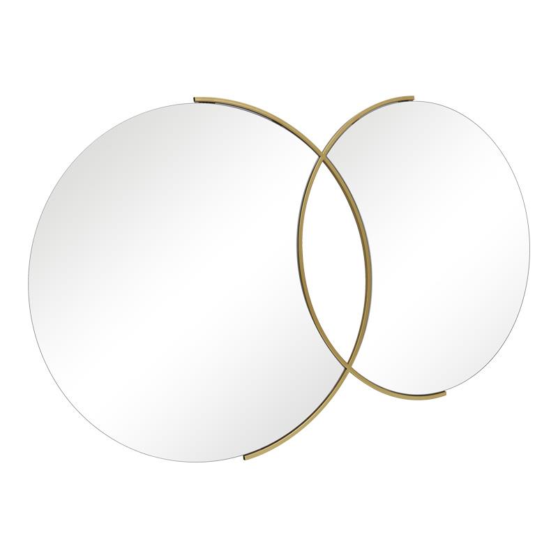 This impressive wall mirror is a unique decorative piece that will elevate any space. With its original design combining two circular mirrors within an elegant gold frame, it adds a modern and luxurious touch.