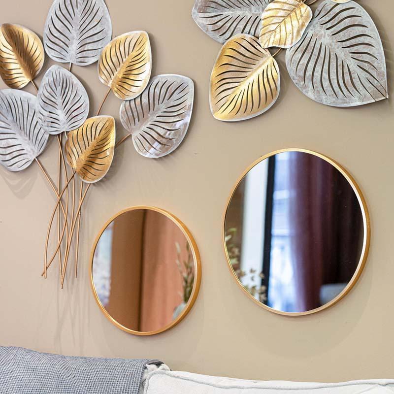 The round shape of the mirror makes it highly versatile, while the gold finish adds a sense of luxury and brightness. Ideal for placement in living rooms, bedrooms, or even more functional spaces, this mirror will elevate every corner of your room.