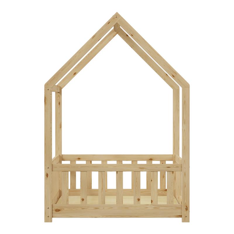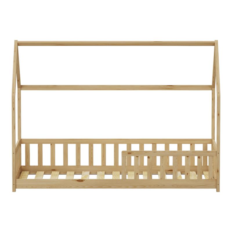 The Callan Montessori house bed with rails offers a modern, inspired design with clean lines that create a warm and welcoming atmosphere, making it ideal for any child’s room. The roof feature adds a playful element, transforming the bed into a cozy hideaway for children.