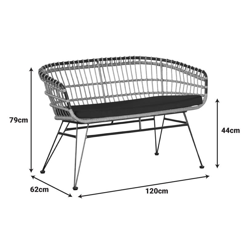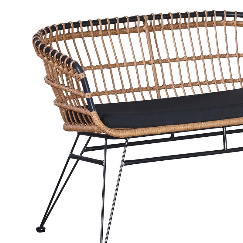 Naoki pakoworld 2-seater garden sofa with pe cushion natural-metal black 120x62x79cm