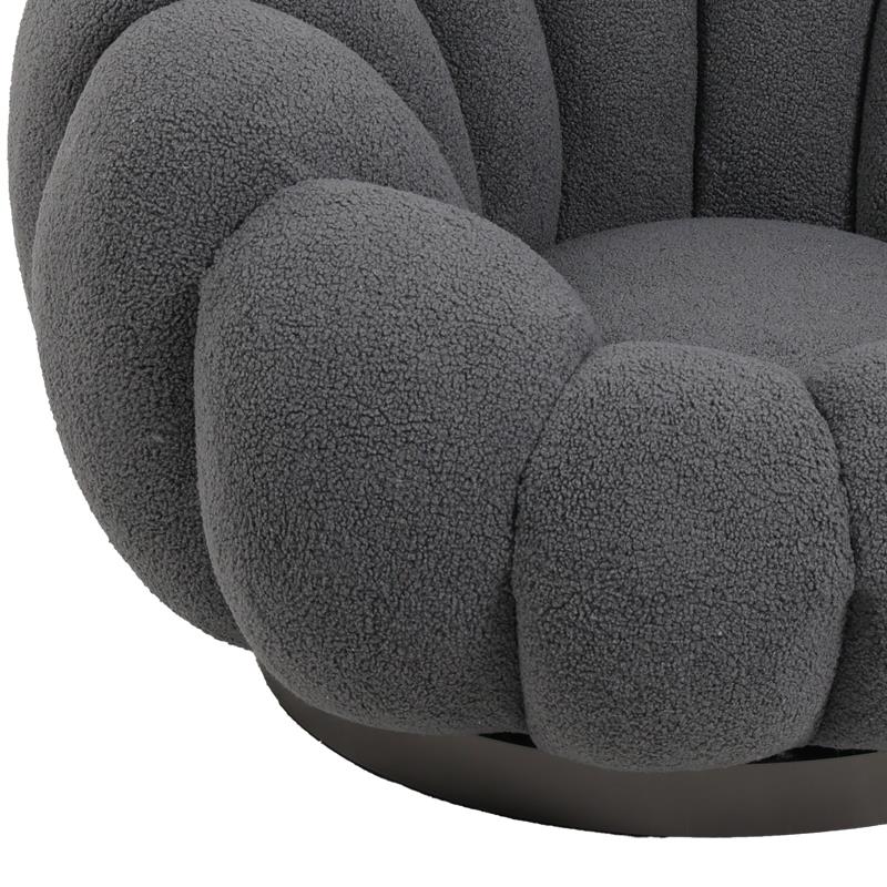 Πολυθρόνα περιστρεφόμενη Nester μπουκλέ ύφασμα σε γκρι απόχρωση 98x97x69εκ