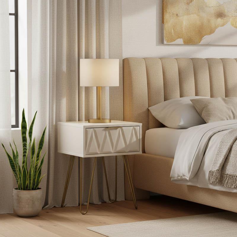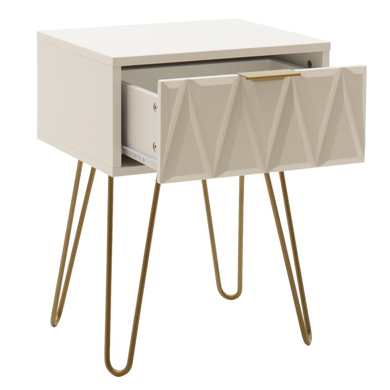 Κομοδίνο Isla χρώμα λευκό painting-χρυσό 42x35x55εκ