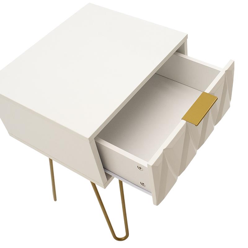Nightstand Isla in white painting-golden color 42x35x55cm