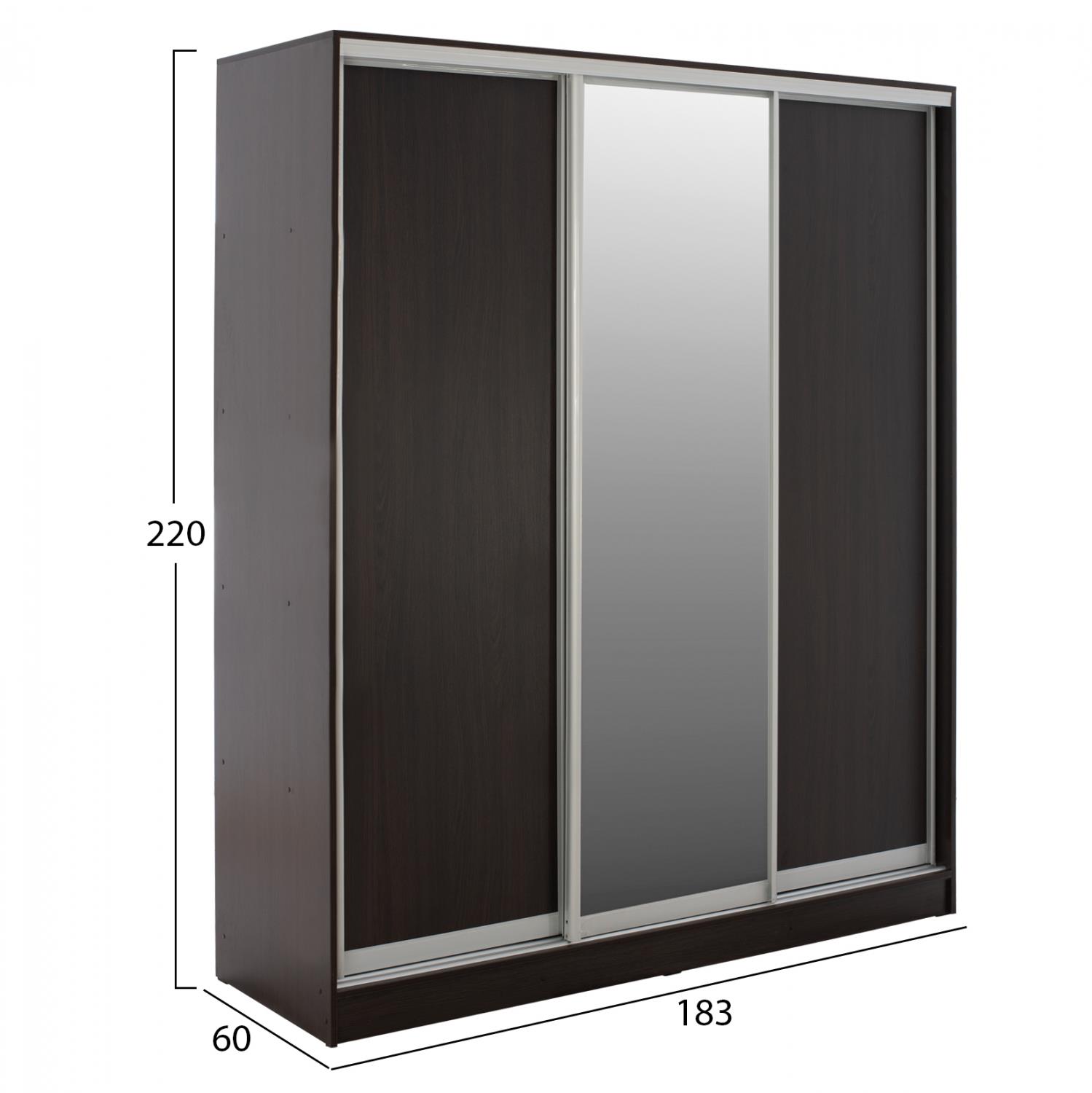 Three-leaf sliding wardrobe ADLER, in wenge color, 183x60x220 cm.