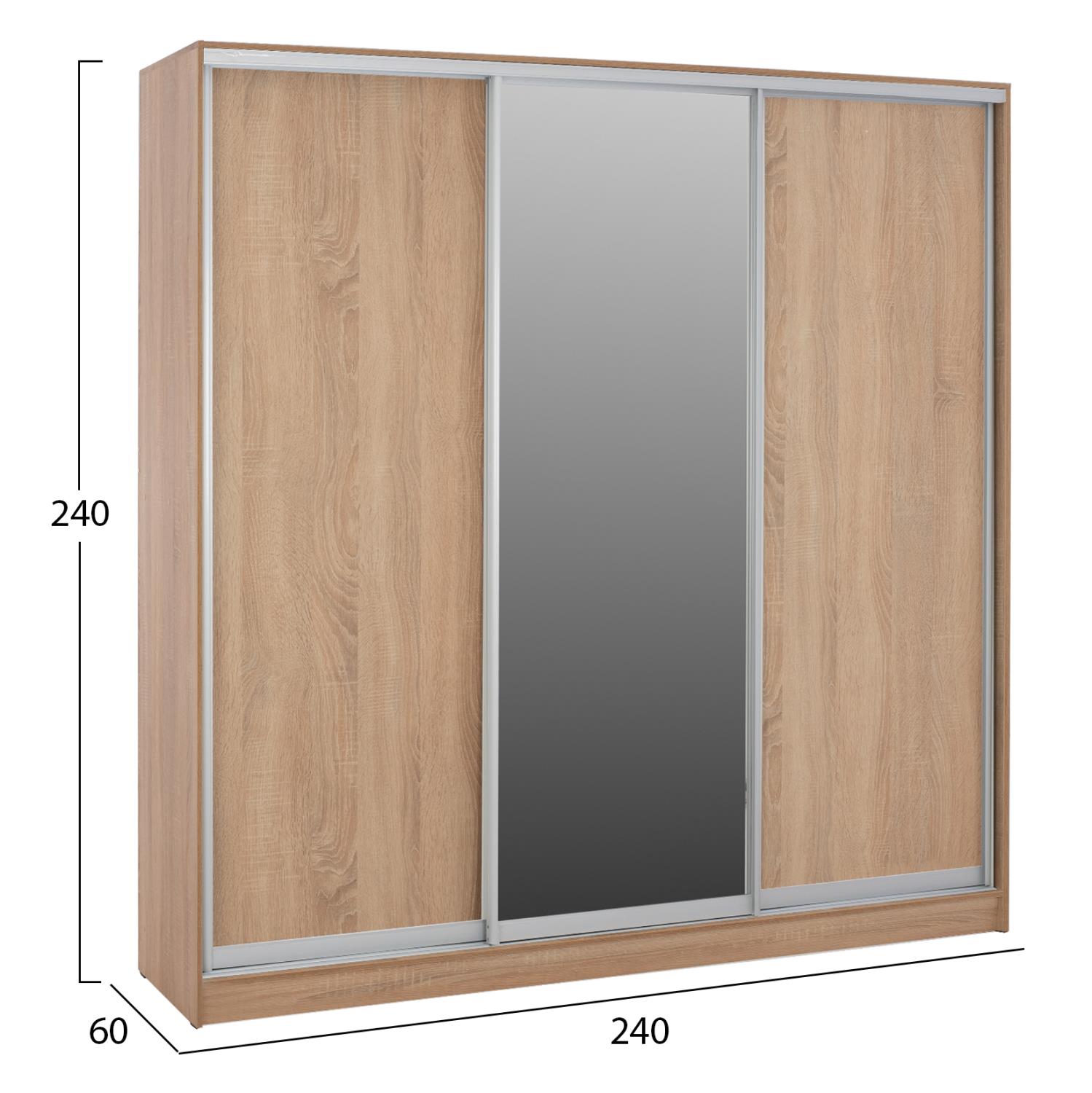 Ντουλάπα Συρόμενη ADLER ΙΙΙ Τρίφυλλη με Καθρέπτη Μελαμίνη Sonama 240x60x240Υ εκ.