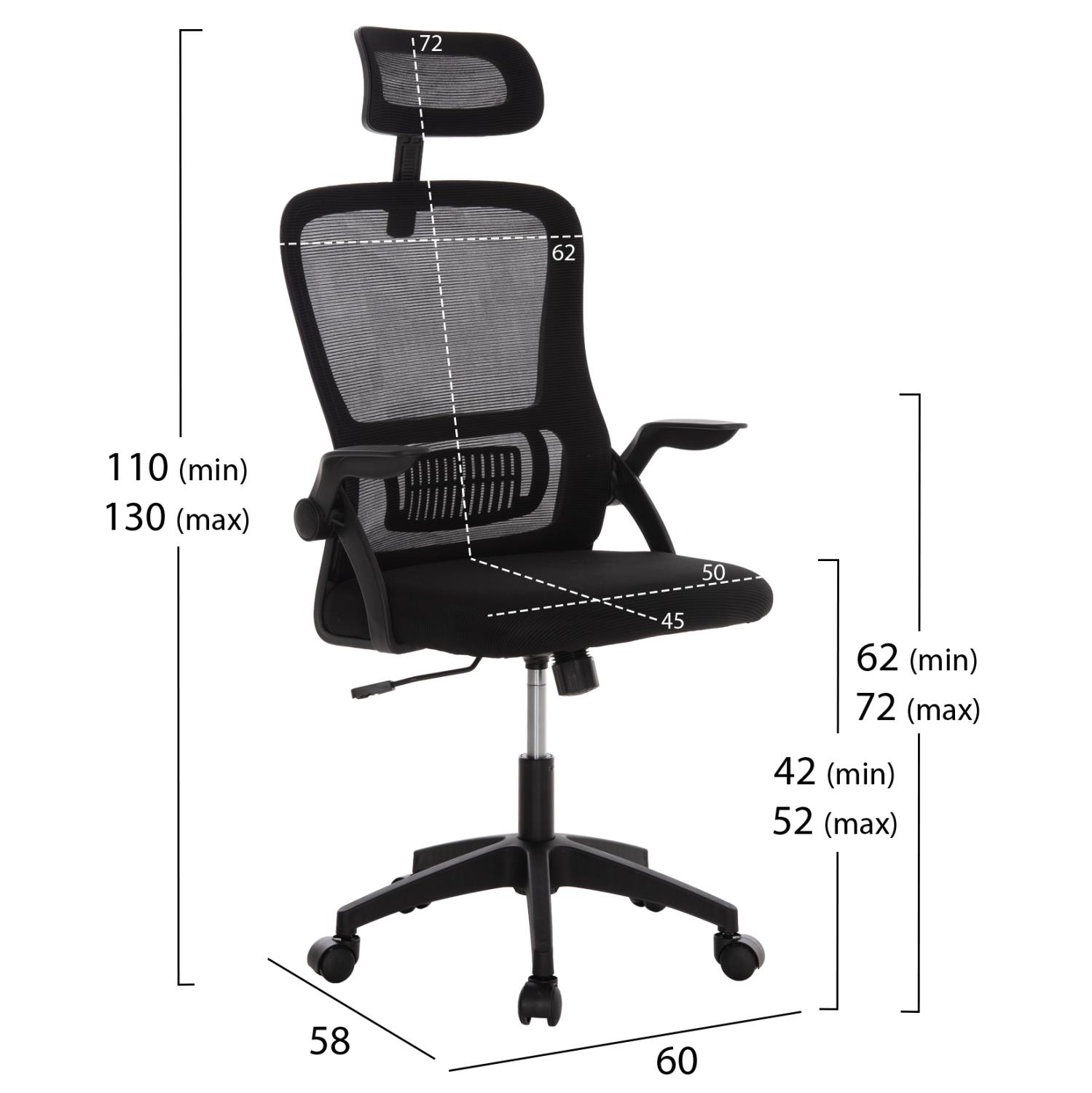 Arm height: 62.5 cm.