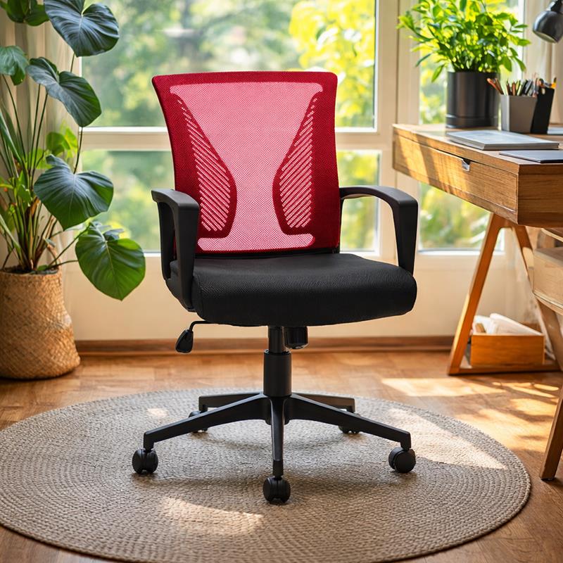 The FL05 office chair is the ideal choice for any work environment, offering a combination of comfort, ergonomics and elegance. The red backrest and black seat create a dynamic combination that fits perfectly into any office, while its construction from high-quality materials ensures long-term durability.