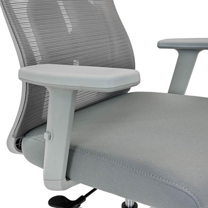 The back of the chair is made of durable mesh, which allows free air circulation and helps maintain a pleasant temperature in the back area. This reduces the accumulation of heat and moisture, offering greater comfort during long hours of work. The seat is upholstered in high-quality fabric, which offers a comfortable seating surface and durability in daily use.