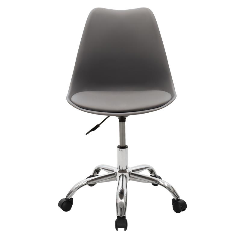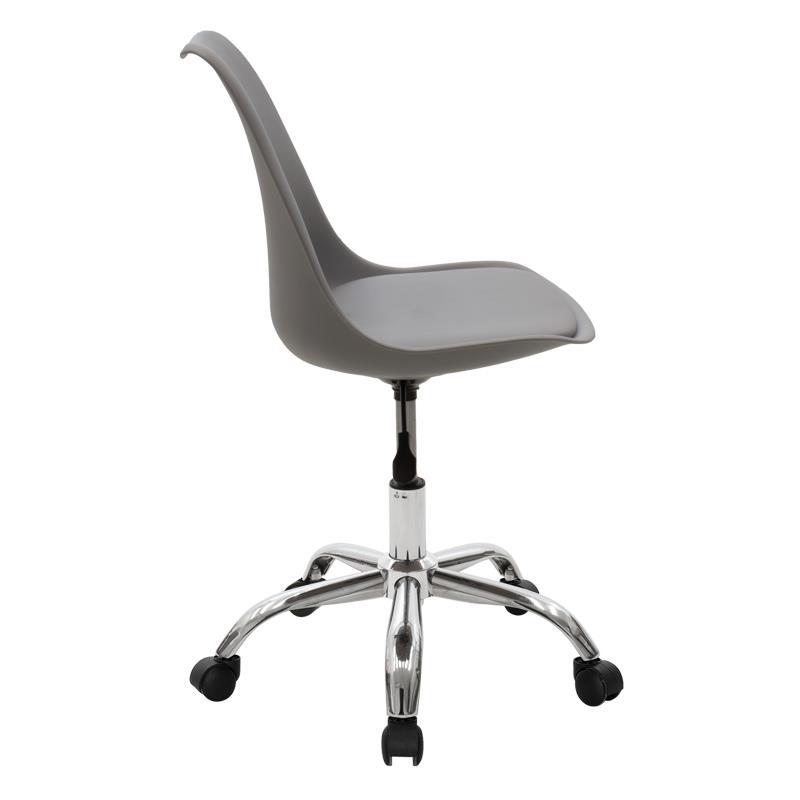 - Back made of polypropylene, with high durability and wear resistance, 100% recyclable material. Follows the spine supporting the waist with a curved finish at the top, offered in gray.