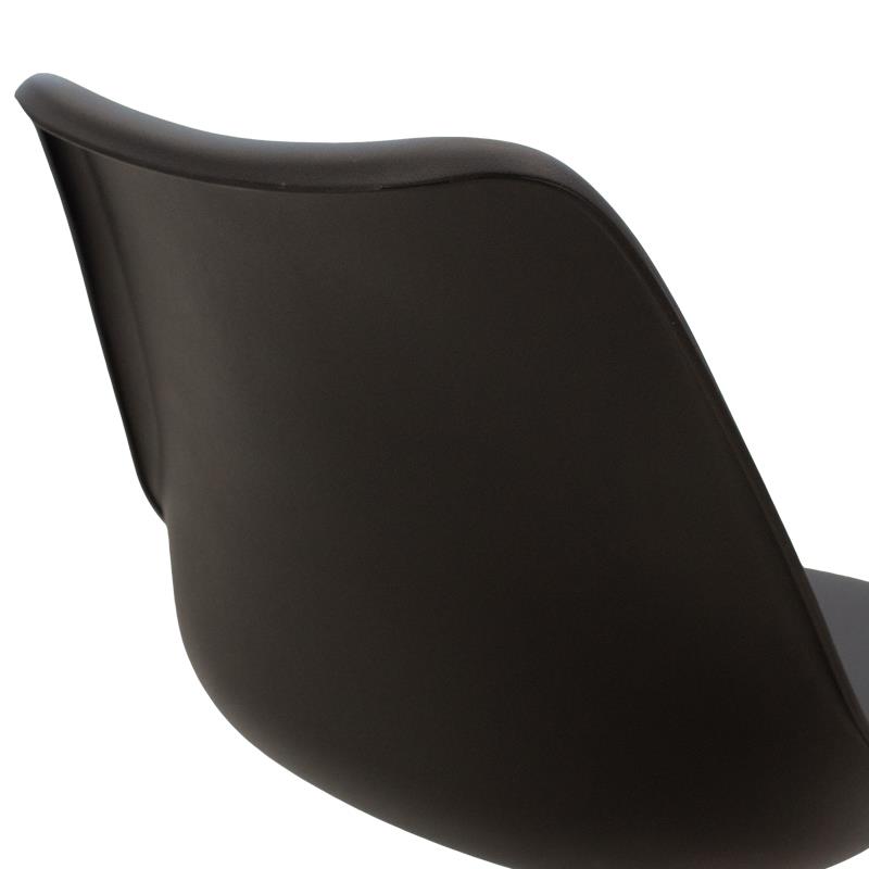 - Back made of polypropylene, with high durability and wear resistance, 100% recyclable material. Follows the spine supporting the waist with a curved finish at the top, offered in black.