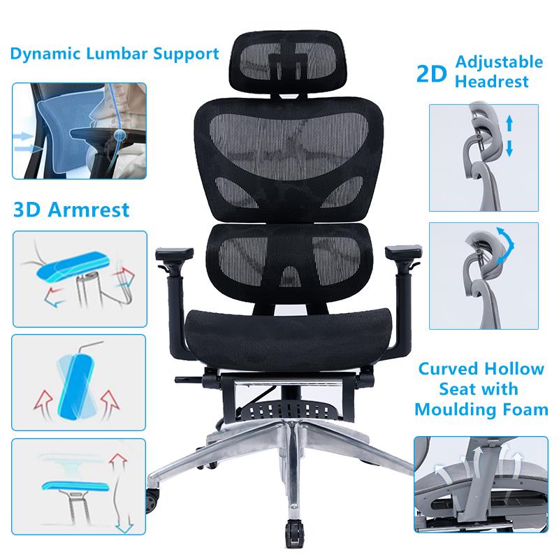 Office chair manager with footrest Thelonius mesh black