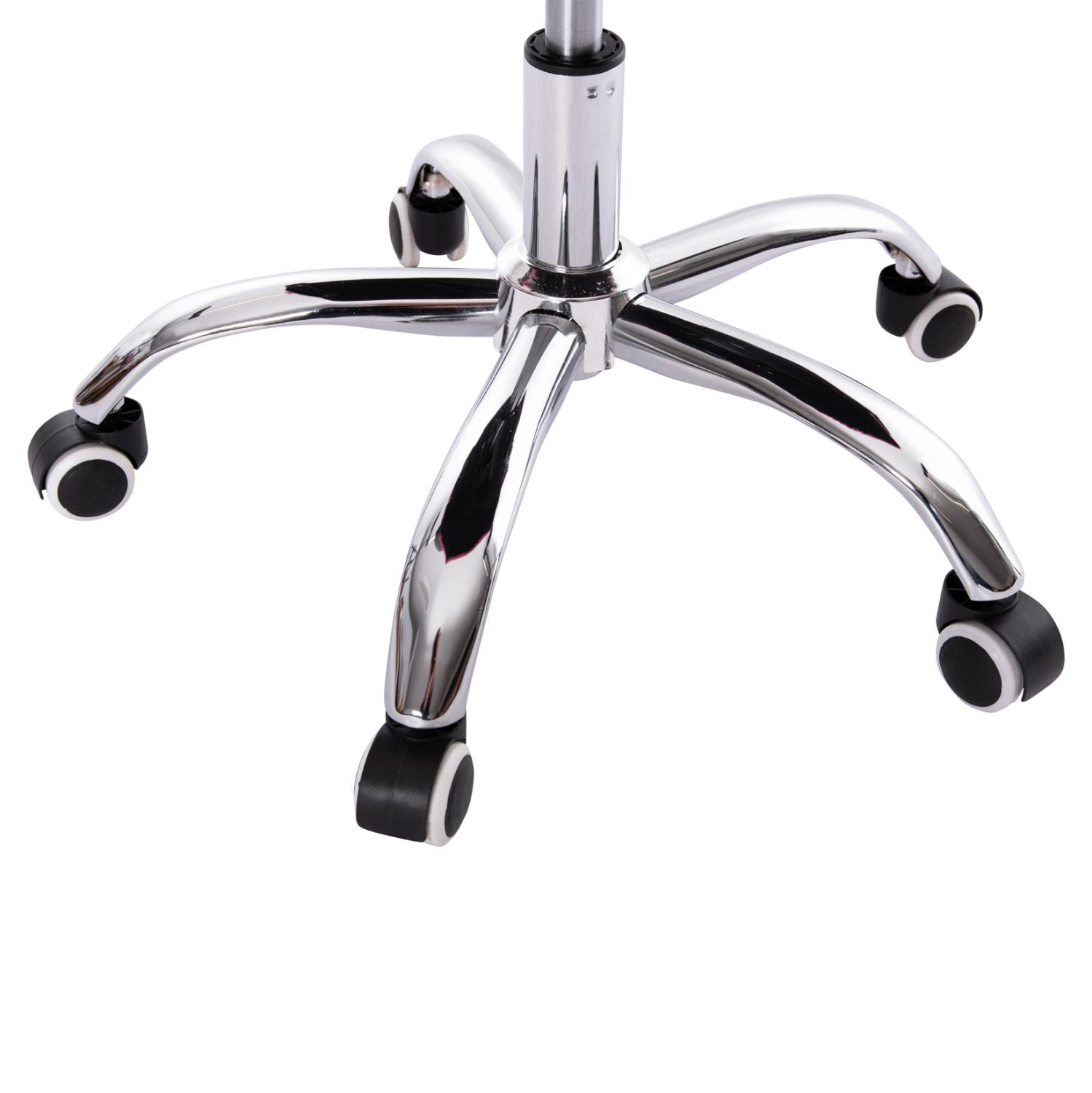 Finally, the caster wheels of the chair with their white stripe, are made of reinforced polyethylene and a rolling surface of soft polyurethane for silent rolling and at the same time protection of the floor. The connection to the "star" of the base is made with 2 cm long steel pins.
