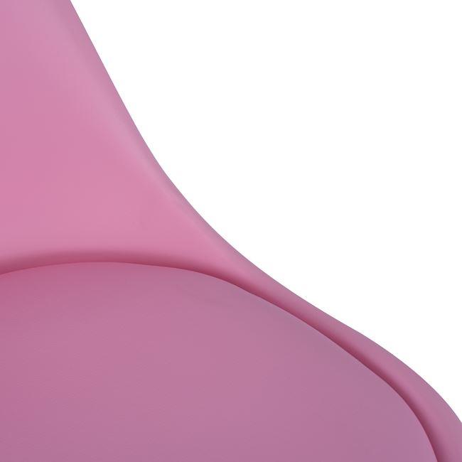 The seat cushion is shallow and covered with pink PU leather. This is also known as synthetic leather or faux leather, with a linen texture. PU is the evolution of leatherette but with its main characteristic being that it is not easily distinguished from real leather. Its composition is basically polyurethane and polyamide micro-fibers in contrast to leatherette which basically contains PVC.