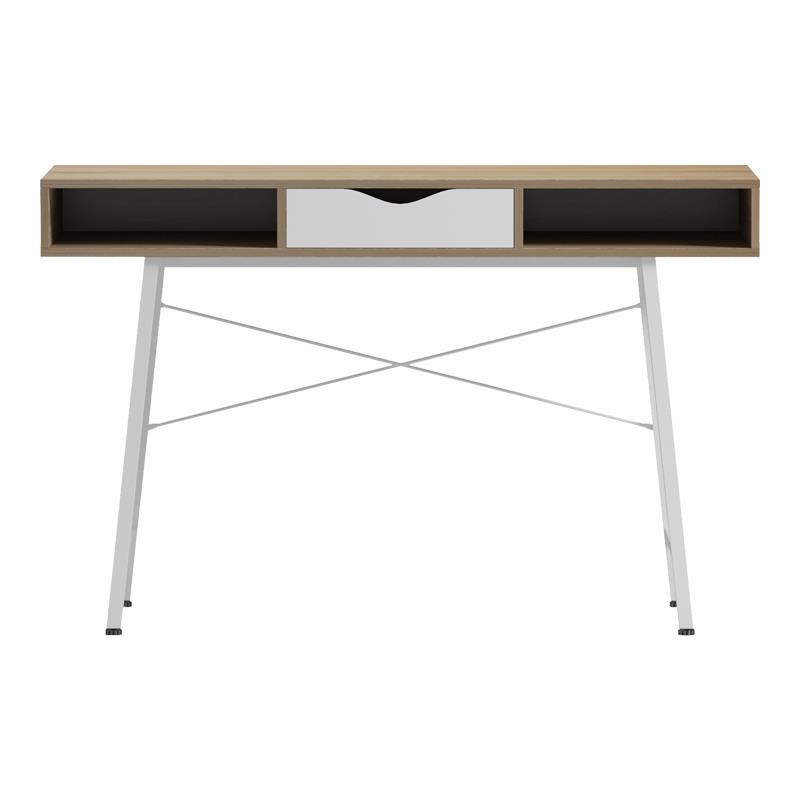 Office desk Komo in sonoma-white color with white metallic legs 120x48x76cm