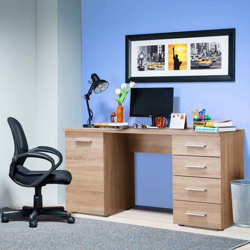 Renew your space with the Liber desk, in a natural sonoma shade, a key element of a fully functional workspace where order and harmonious organization prevail. The drawers and cabinets it has provide enough space for storing and placing objects and documents. By choosing the Liber desk, you choose functionality and harmony!