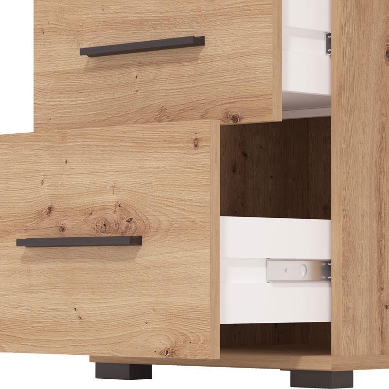 Surface: Made of high quality Particleboard with certified E1 melamine coating with Artisan Oak color finish, which offers natural beauty and durability over time.