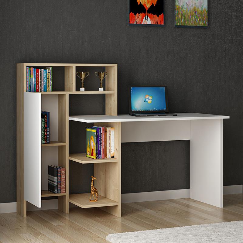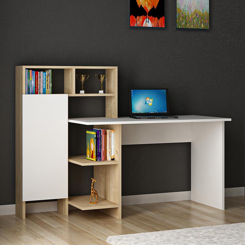 - Features: Includes a white desk with an integrated natural-colored bookcase. It has shelves and a spacious cabinet for closed storage of office supplies and other accessories.