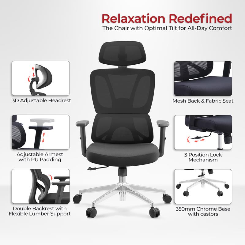 - Durable frame: Mounted on a five-spoke high-strength black polypropylene base.