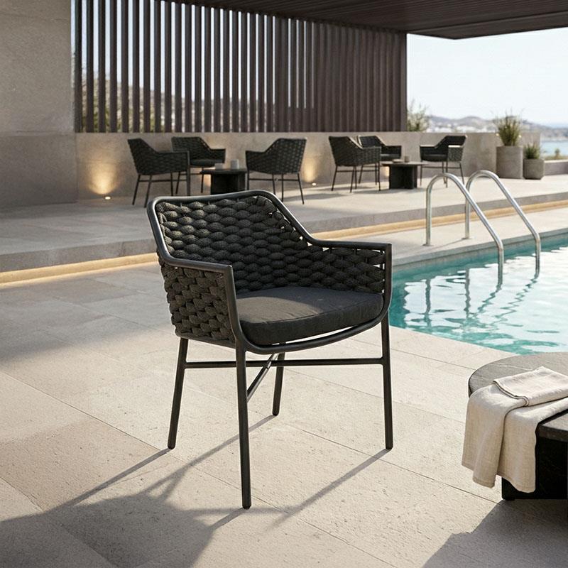 The Ortegia armchair is an excellent choice for those seeking a stylish, comfortable, and durable piece of furniture for their outdoor space. Featuring a sturdy aluminum frame and an innovative woven design, it combines aesthetics with resilience and longevity. Perfect for both residential and professional use.