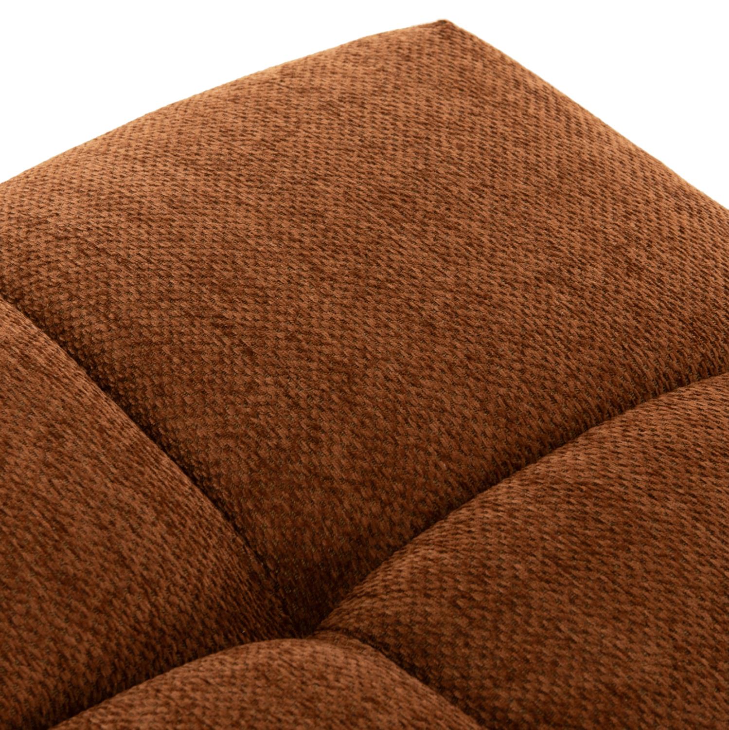 • Upholstered with a quality brick red embossed fabric that adds warmth and character to the space.